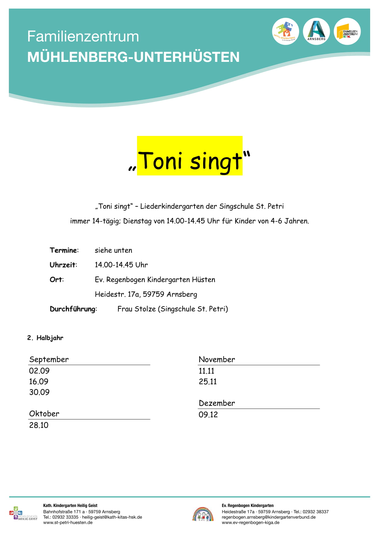 Somit wird der Kindergarten Bärenhöhle Bestandteil des Ev. Regenbogen Kindergarten Hüsten.