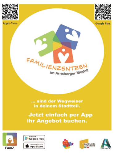 Laden Sie sich die Famz-App herunter und geniessen Sie die Angebotsvielfalt der Familienzentren im Arnsberger Modell.